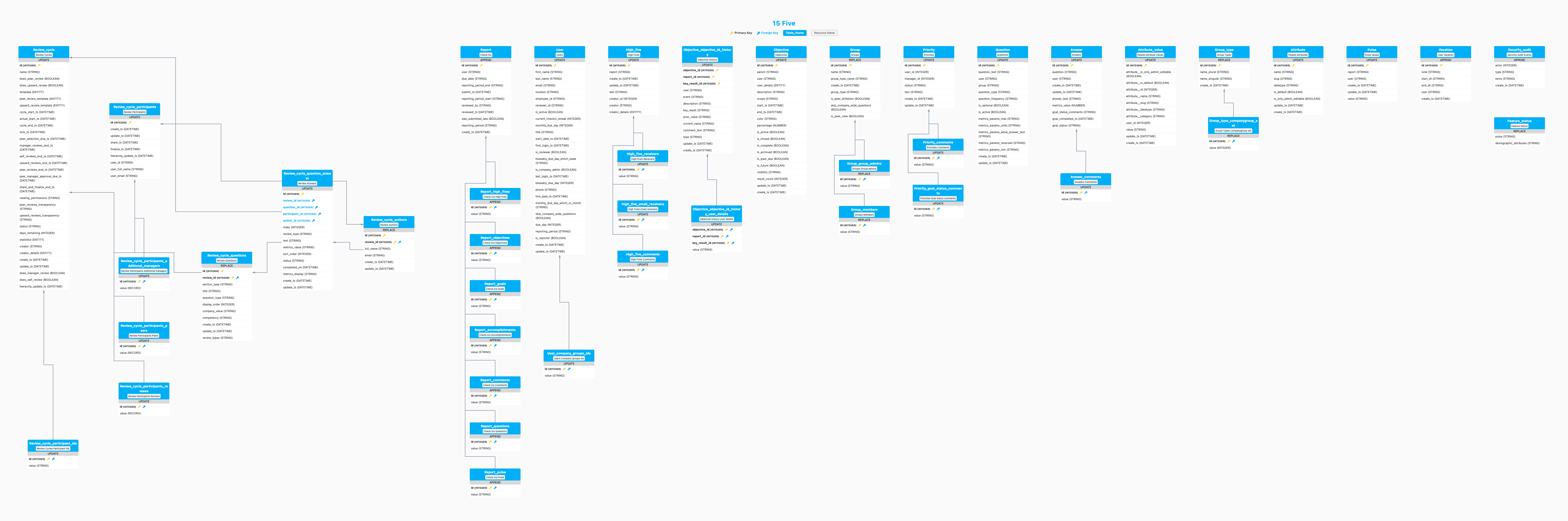 Check out the 15Five entities and relationships that you can load to your destination below.