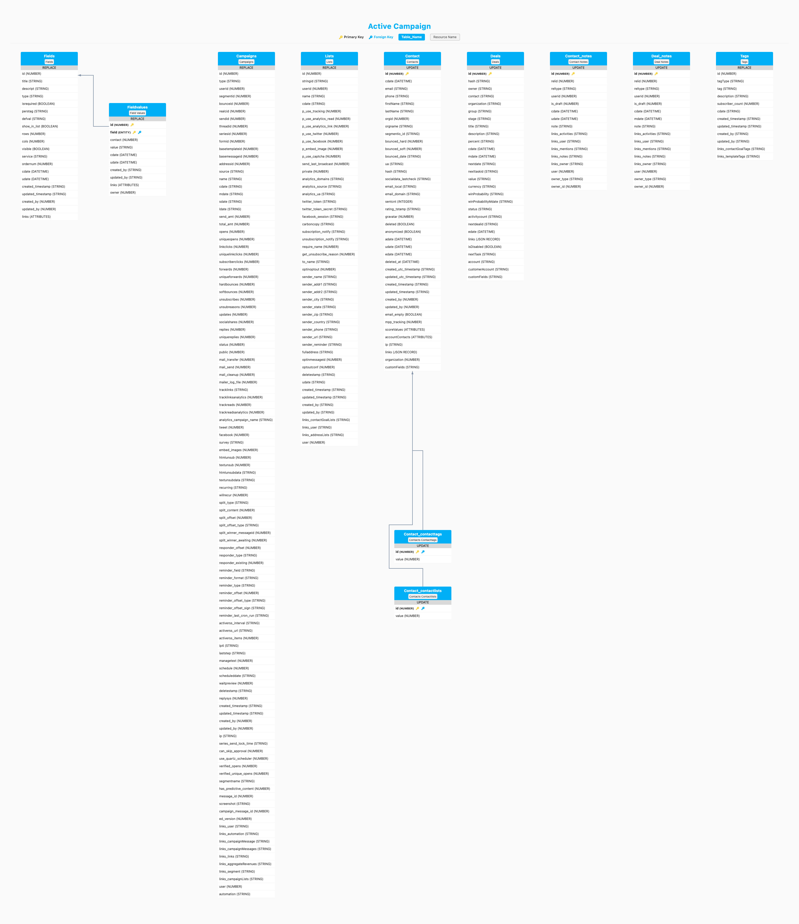 Check out the Active Campaign entities and relationships that you can load to your destination below.