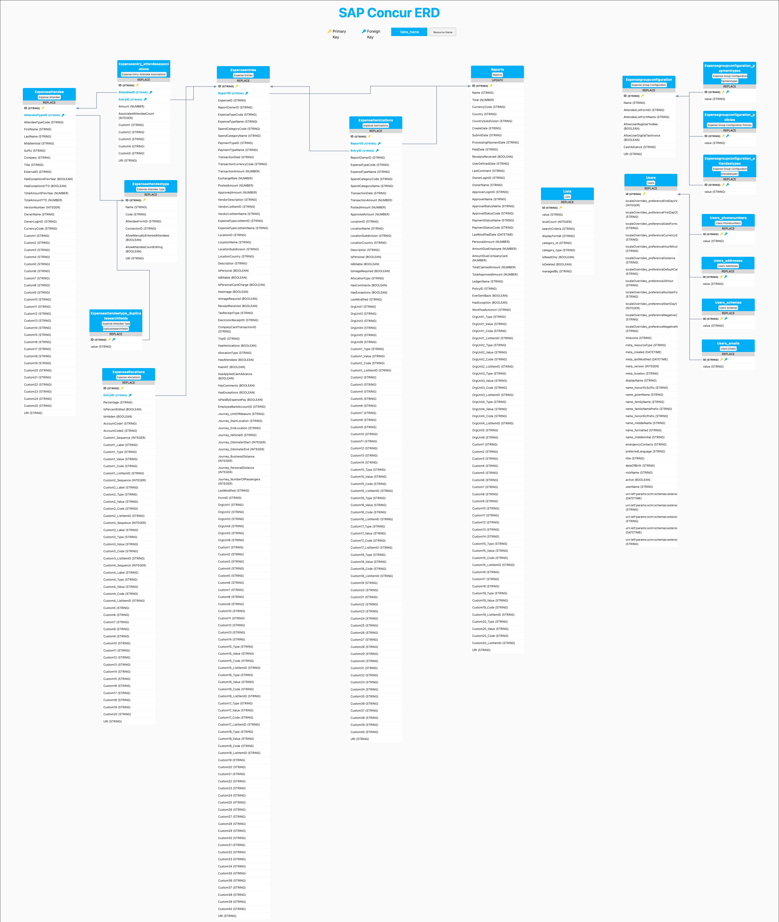 Check out the SAP Concur entities and relationships that you can load to your destination below.